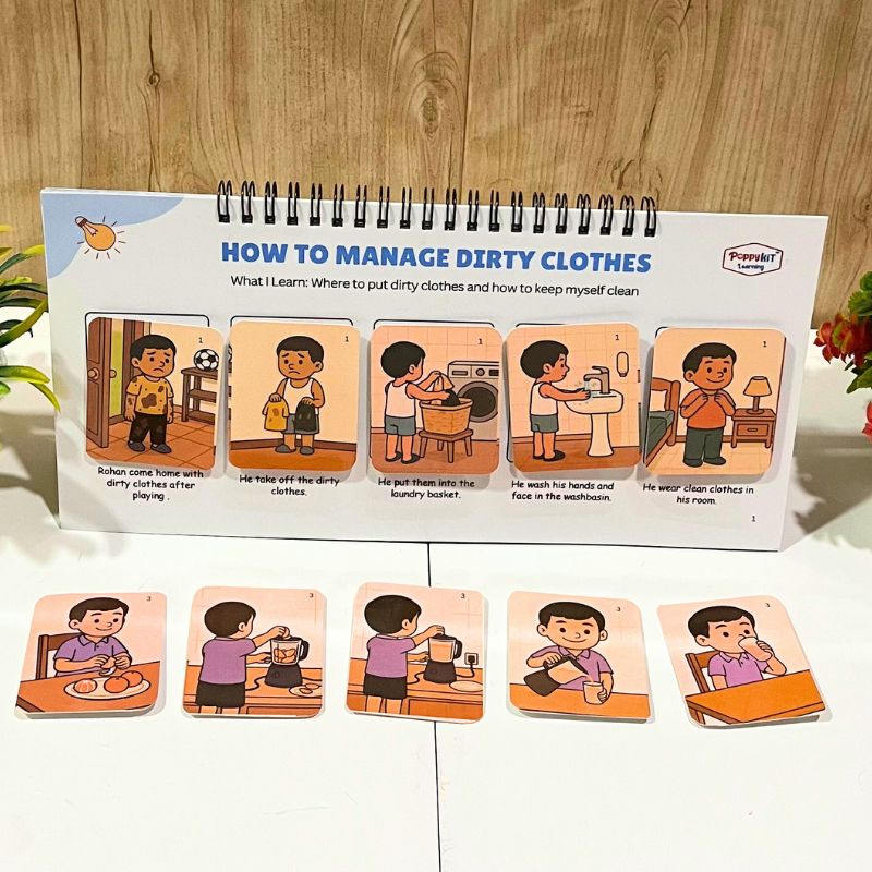 Each book breaks down everyday household activities into clear picture sequences, helping children learn what happens first, next and last — reducing anxiety, improving predictability, and building confidence in real outdoor situations.